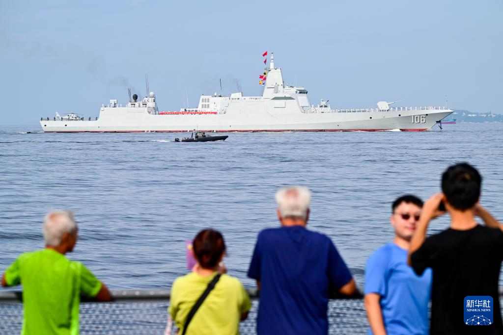7月3日,人们在岸上拍摄海军延安舰抵达香港。