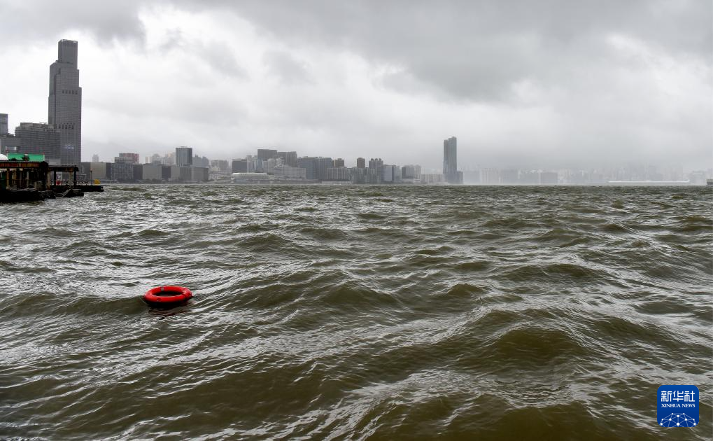 9月24日拍摄的风雨中的香港维多利亚港。新华社记者 陈铎 摄