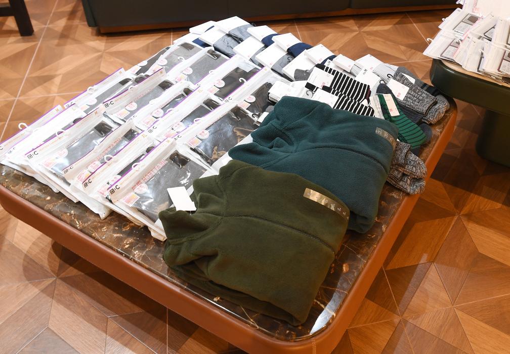 这是11月28日拍摄的粤海酒店为入住的受灾居民准备的衣物。新华社记者 陈铎 摄