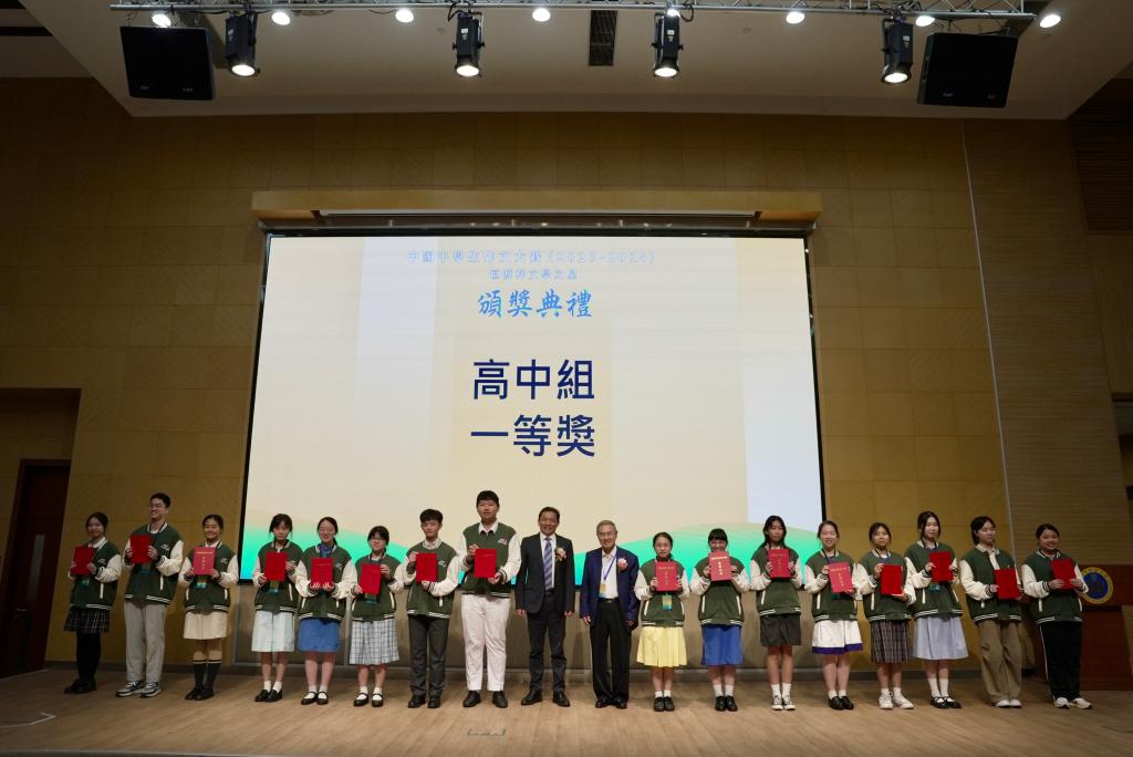 4月21日,部分高中组一等奖获得者与颁奖嘉宾合影。新华社记者 郭雨祺 摄