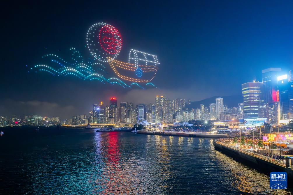 新华社香港5月11日电(记者谢妞)香港旅游发展局11日在香港湾仔海滨举办无人机表演,庆祝即将到来的佛诞和太平清醮两大传统节庆,向市民和旅客送上祝福。