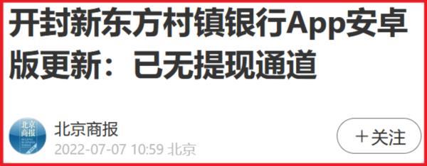 据北京商报消息,河南开封新东方村镇银行的手机软件上,已经没有了提现通道。