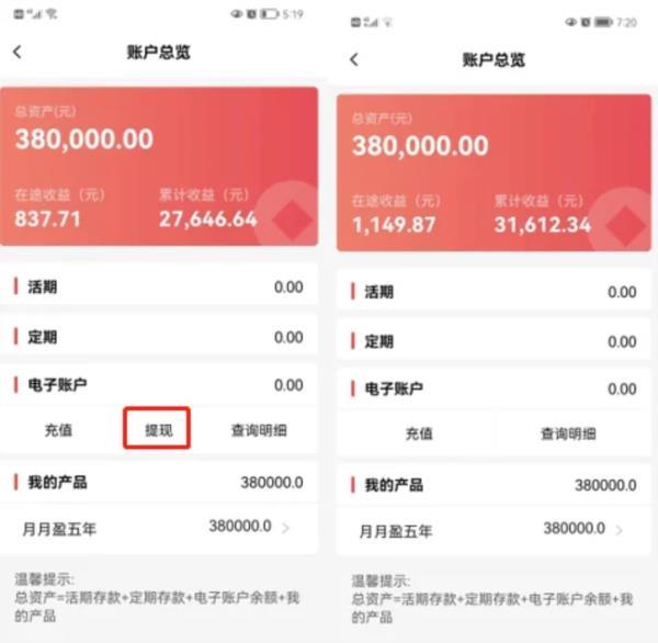 3,开封新东方村镇银行的手机APP上,更是把“我的存款”,改成了“我的产品”,还下掉了“提现”的按钮……