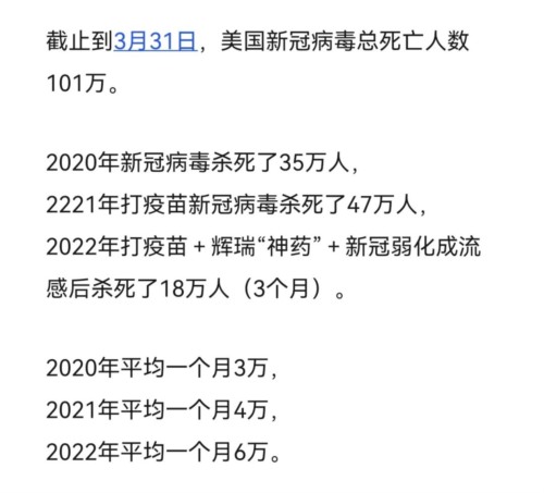 1、既然奥密克戎比流感还弱(炎症反应),那请张主任研究下美国的这个反常现象(下图所述),这究竟是为什么?