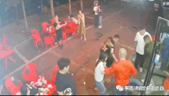 请注意看此图,红桌椅边高个子女人当看客,离她不远处柔弱女孩试图挣脱男友求助被打女孩。