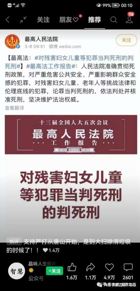 两高报告指出:准确贯彻死刑政策,对严重危害公共安全、严重影响群众安全感的犯罪,对残害妇女儿童、老年人等挑战法律和伦理底线的犯罪,论罪当判死刑的,依法判处并核准死刑,坚决维护法治权威!
