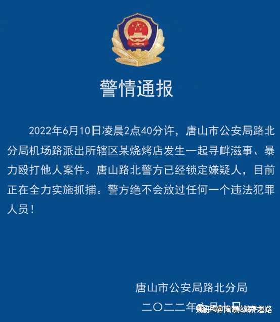有网友指出,2022年6月10日凌晨,发生在唐山市夜市烧烤店数名男子围殴4名女子的事件,很可能是继唐山大地震以来,引起全国广泛关注的性质最恶劣、影响最巨大的社会事件。