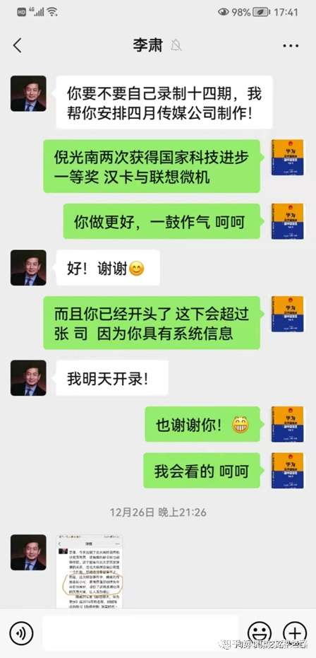 再后来,那家文化公司一直没把修改后的《倪光南:大国匠“芯”》 书稿再给我审读。期间,李某某曾说在书封面著名我审读之类,我婉拒这样署名,而且再三表示不要出现我的名字。结果,后来他们没再给我审稿、也没再给倪院士审读就直接出版该书,可却违背我的意愿、居然在书上把我作为特邀审读署名。
