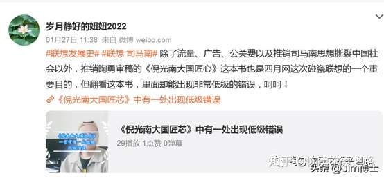 沙雕写道:“除了流量、广告、公关费以及推销司马南思想撕裂中国社会以外,推销陶勇审稿的《倪光南大国匠心》这本书也是四月网这次碰瓷联想的一个重要目的!”