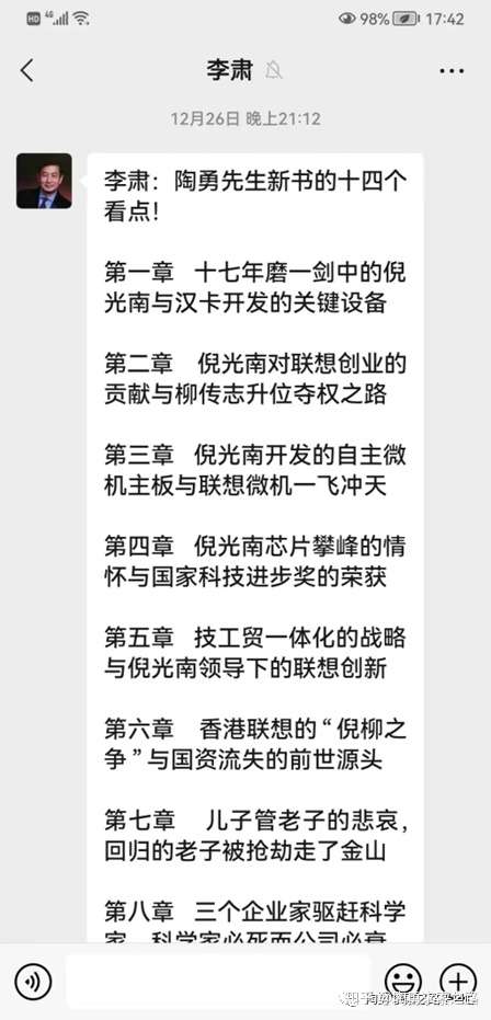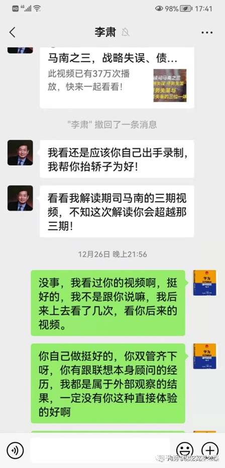 回家后跟某人继续微信交流,开始比较好,后来他就慢慢走火入魔、变得稀奇古怪。劳资新书明明叫《抛弃创新 再难联想——联想卅七年,从创造无数IT神话到滑下神坛》,他居然肆无忌惮、狂妄地给劳资书名瞎改,改得莫名其妙、不伦不类——(就你这种智障才会相信!)而且还发布在微信朋友圈。所以,劳资跟他不客气,加上他种种不靠谱,就吵起来了。当时,考虑到涉及另外两个朋友,就暂时没跟他撕破脸。其时,哥微信交易因为限额到了,必须上传身份证号,哥不想上传,微信转账等没法进行。不然,哥想给北大国经智库秘书长转账一千元,让他退还某人红包。