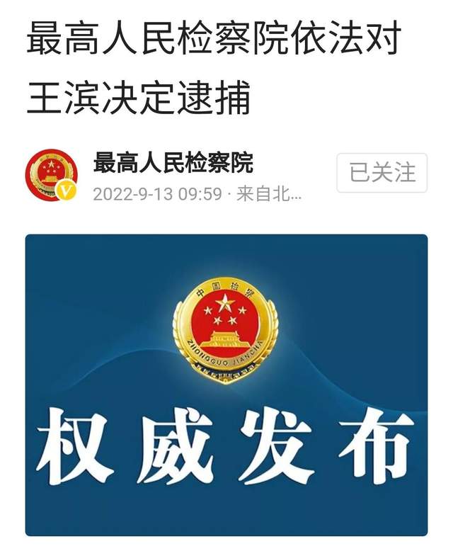 9月13日,最高人民检察院对中国人寿集团原董事长王滨决定逮捕