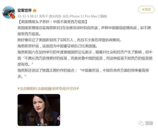 自从福奇宣称中国只有依靠美国的疫苗和神药才能控制住疫情以后,竟然美国的情报总监也跳出来攻击中国的疫苗。