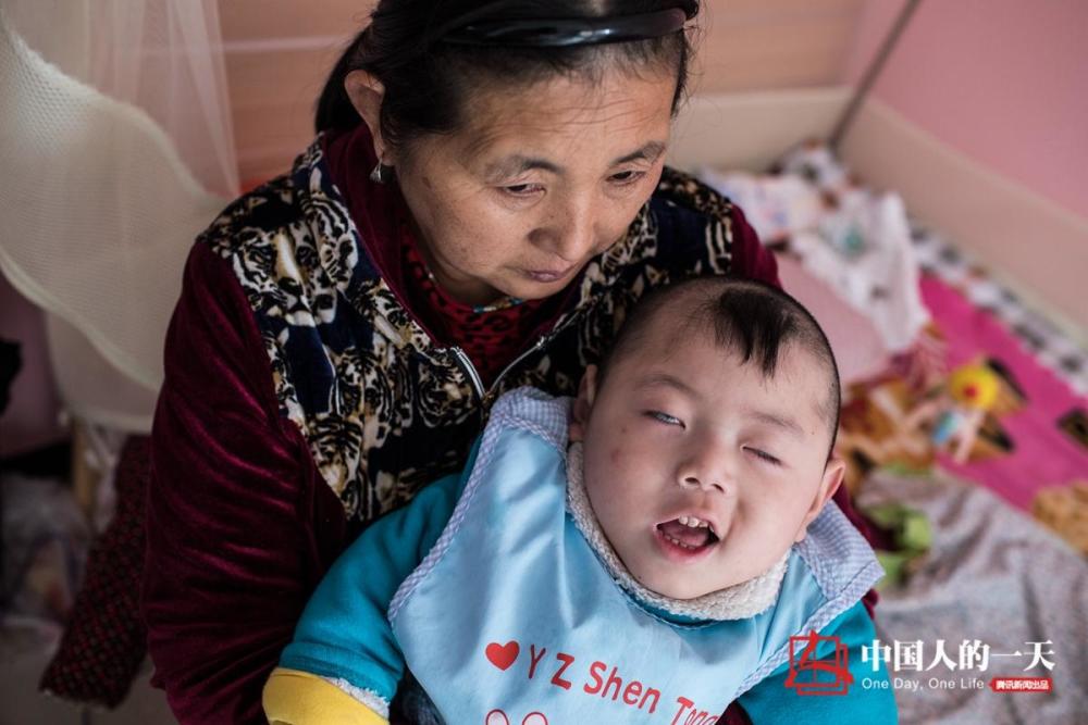 2016年8月3日,山东省夏津县白辛庄村,一名出生5个月的婴儿被亲生母亲反复摔打,致其失明重伤。这个婴儿叫范传恩,这场灾难至今令范家上下惊魂未定,孩子被送去抢救之后的20天后,桂芳的尸体被村民从离家一墙之隔的河里捞出。有人说她是因为内疚跳河自杀,也有人说她是又犯病了,不慎落水身亡。图为奶奶抱着传恩。