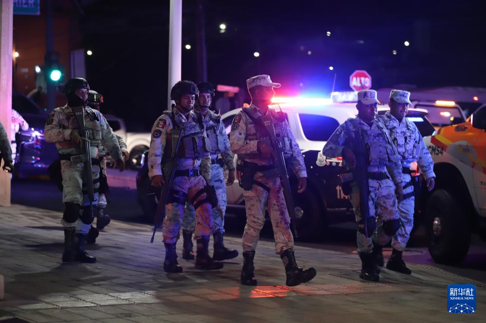 5月22日晚,安全人员在墨西哥新莱昂州的事发现场警戒。新华社发