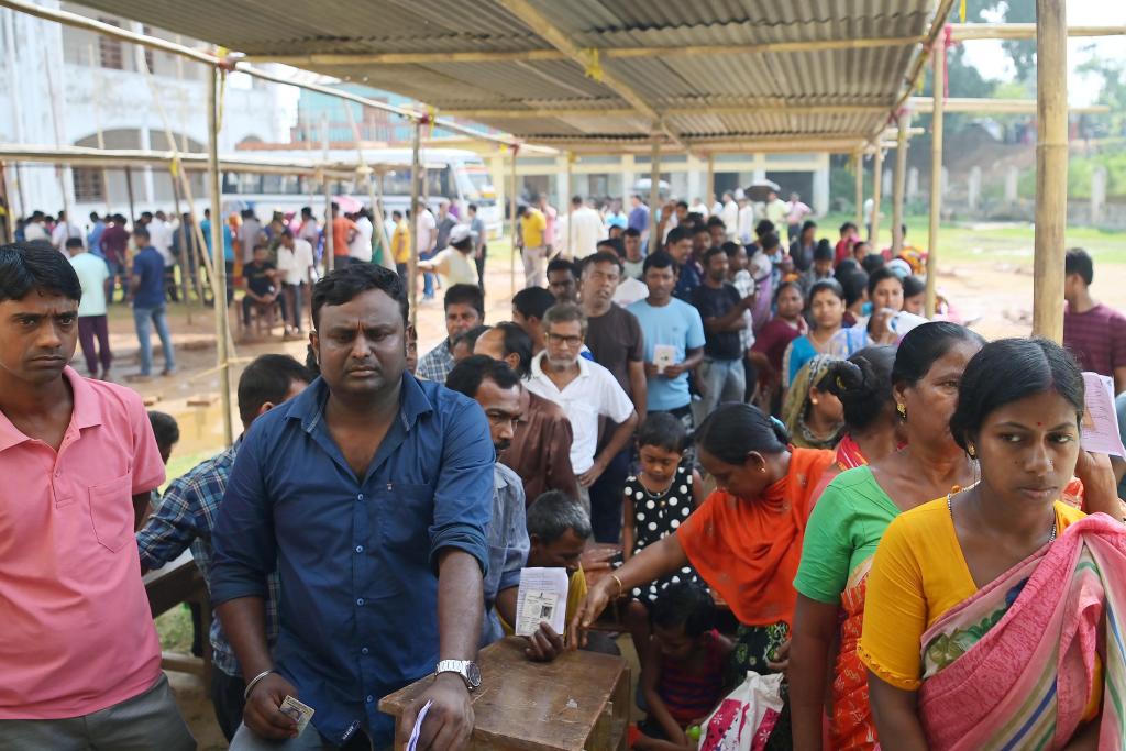 4月19日,在印度特里普拉邦阿加尔塔拉,人们在一处投票站参加投票。新华社发