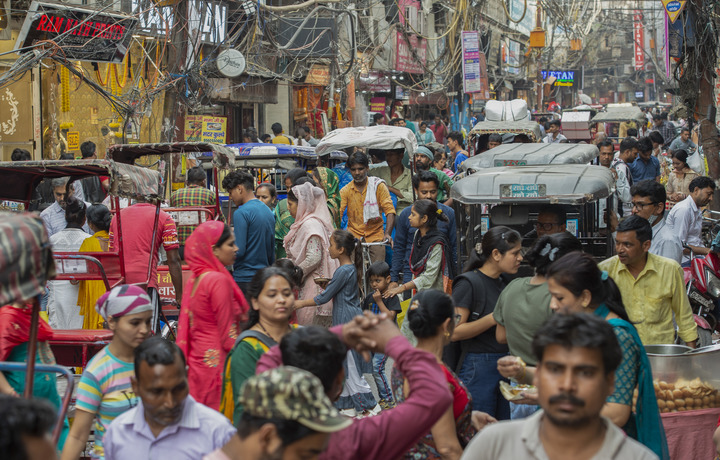 2023年4月26日,人们聚集在印度新德里的一处市场。新华社发(贾韦德·达尔摄)