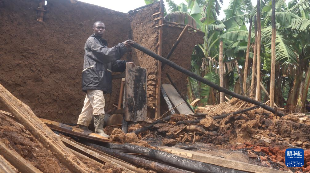 6月11日,在刚果(金)东部北基伍省贝尼地区,一名居民在一座遇袭村庄清理现场。