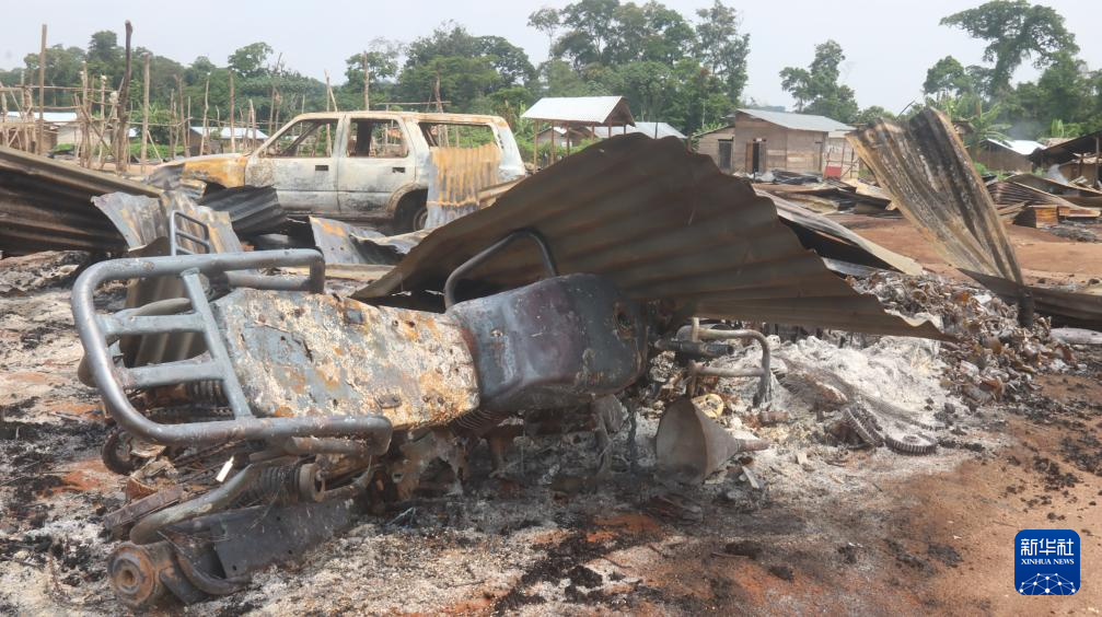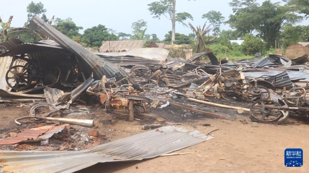这是6月11日在刚果(金)东部北基伍省贝尼地区拍摄的遭到袭击的村庄。