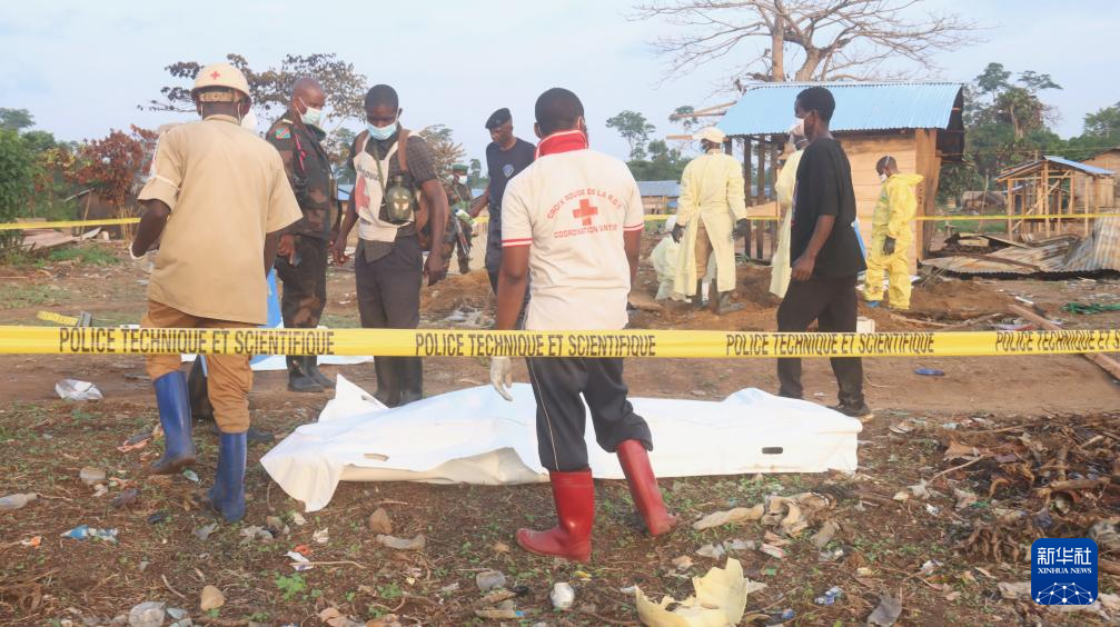 6月11日,在刚果(金)东部北基伍省贝尼地区,医务人员在一座遇袭村庄清理现场。