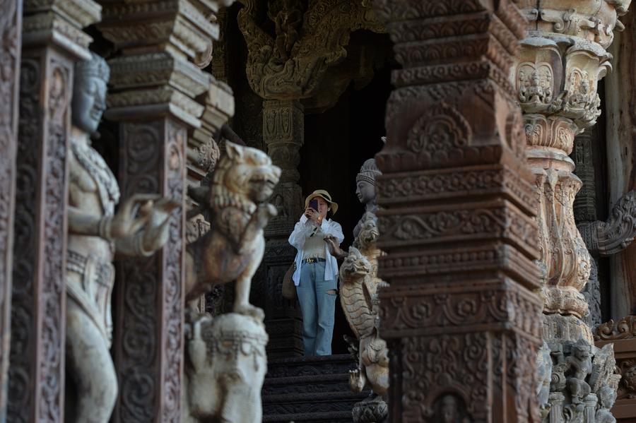 6月6日,游客在泰国春武里府芭堤雅参观真理圣殿。新华社发(拉亨摄)