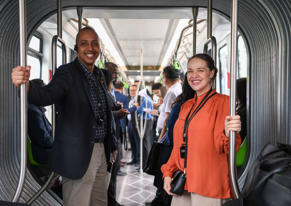 2024年4月22日,拉美和加勒比国家驻华使节、机构代表和记者应外交部邀请,在襄阳腾龙汽车有限公司参访。新华社记者 杜子璇 摄
