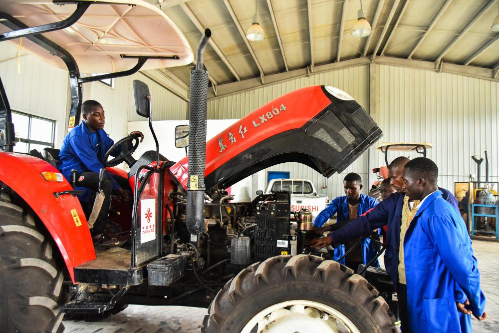2023年1月12日,学生在喀麦隆亚巴西农业职业技术中学上拖拉机实践课。位于喀麦隆滨海大区亚巴西的农业职业技术中学是喀麦隆第一所农业技术学校。这所由中国援建的学校于2016年建成移交。新华社发(科普索摄)
