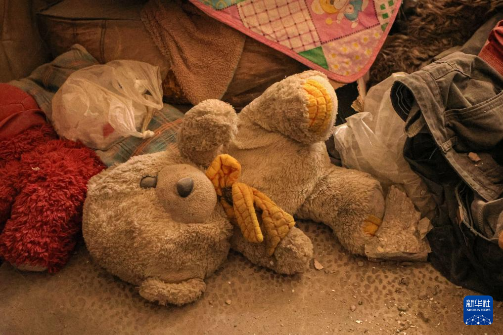 这是6月25日在加沙地带南部城市汗尤尼斯拍摄的一处废墟里的玩具。