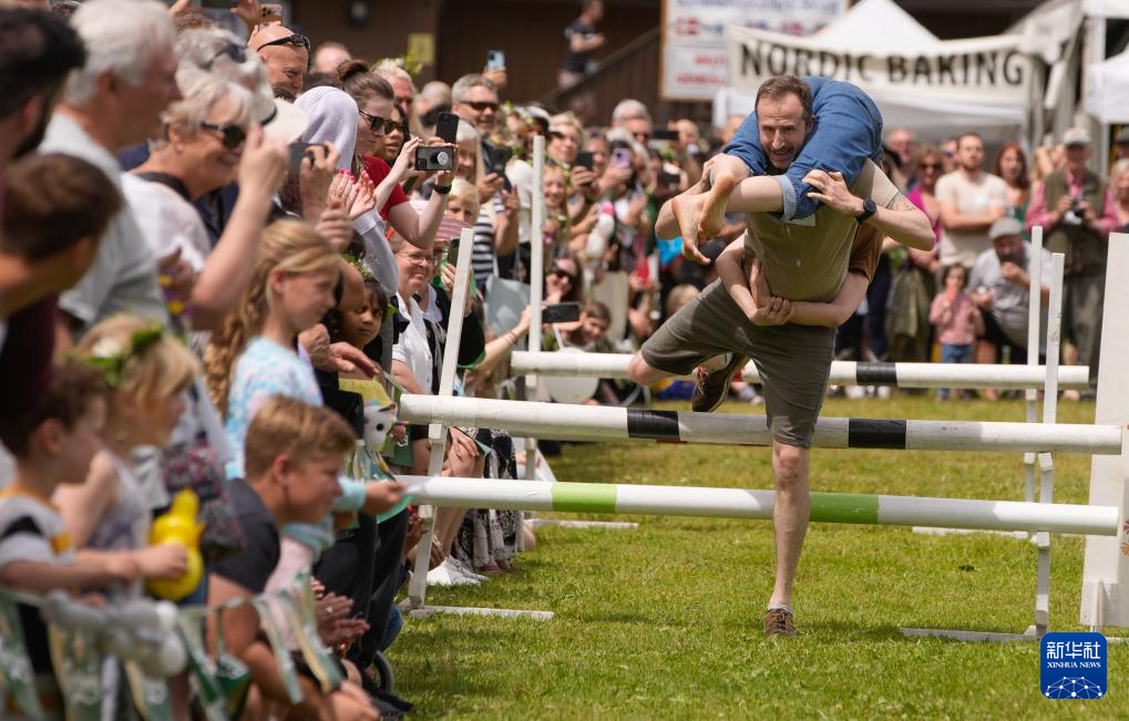 在这场趣味“背妻大赛”中,参赛选手需背负妻子快速通过障碍赛道,胜出队伍将赢得相当于妻子体重的啤酒。
