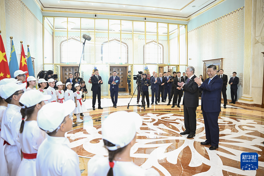 当地时间7月2日中午,国家主席习近平乘专机抵达阿斯塔纳,出席上海合作组织成员国元首理事会第二十四次会议,应哈萨克斯坦共和国总统托卡耶夫邀请,对哈萨克斯坦进行国事访问。托卡耶夫在机场为习近平举行盛大隆重的迎宾仪式,十余名哈萨克斯坦少年儿童用中文演唱《歌唱祖国》。