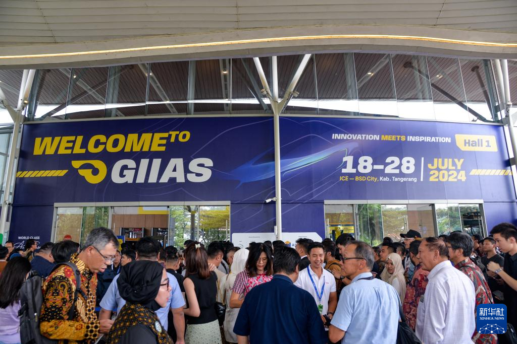 7月18日,在印度尼西亚万丹省唐格朗的印尼会展中心,人们排队入场准备参观2024年印尼国际汽车展。