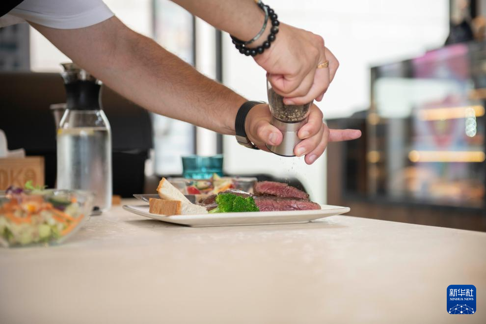 6月20日,在芜湖古城的LOKO牛排馆,马丁为牛排配黑胡椒粉。