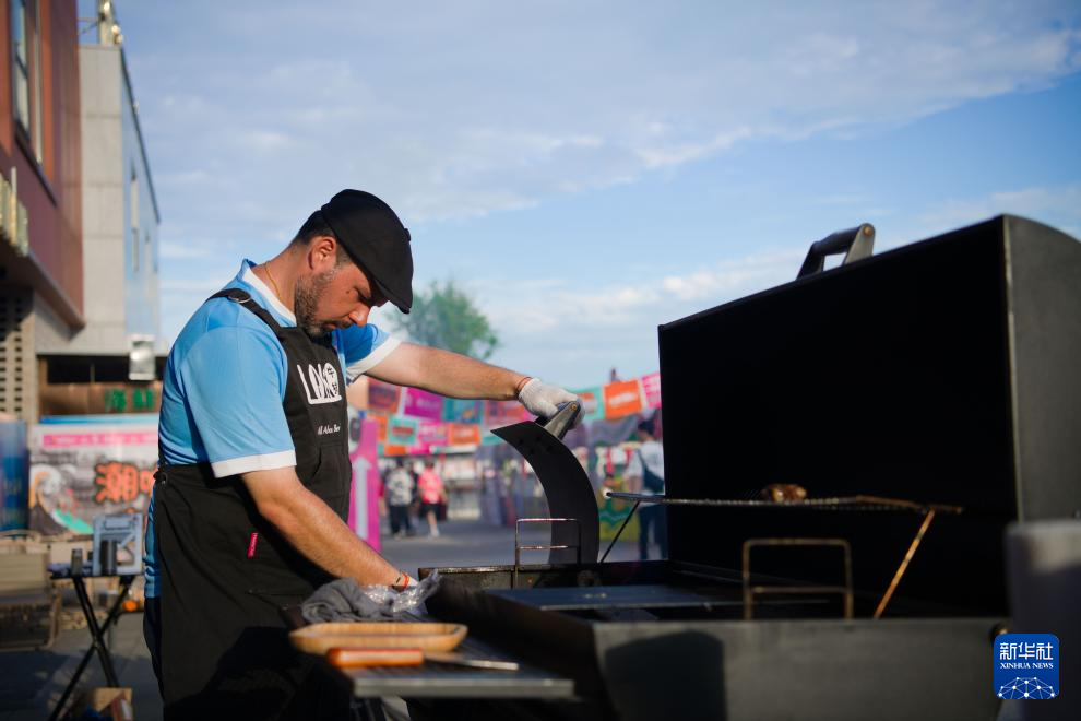 7月19日,在芜湖古城,马丁在当天举行的啤酒节上制作牛排。