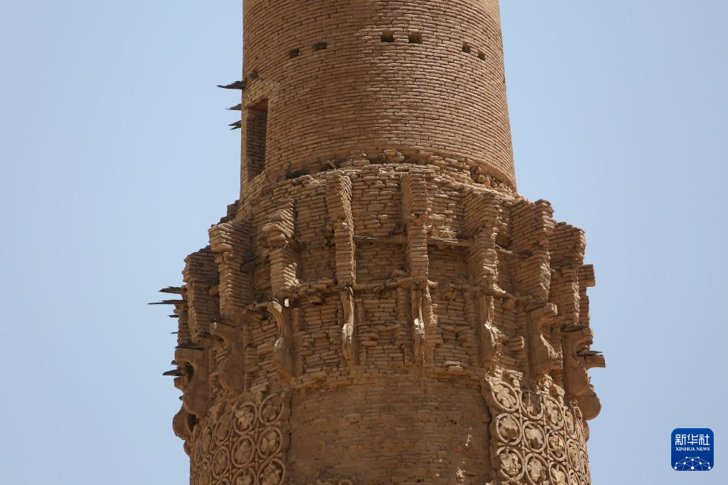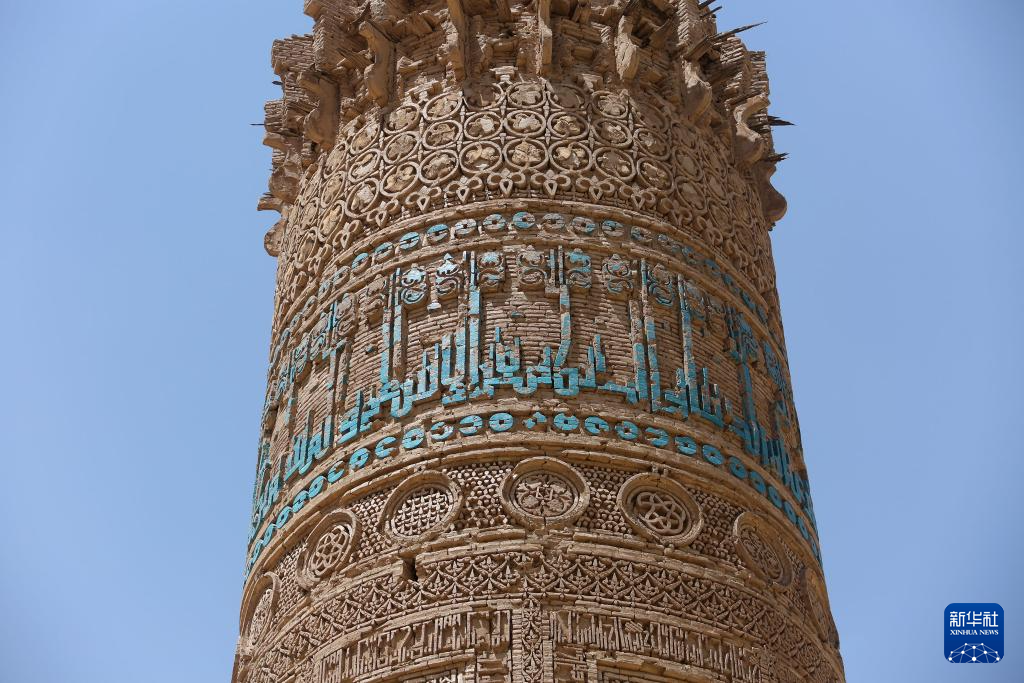 这是7月28日在阿富汗古尔省拍摄的贾姆宣礼塔塔身。