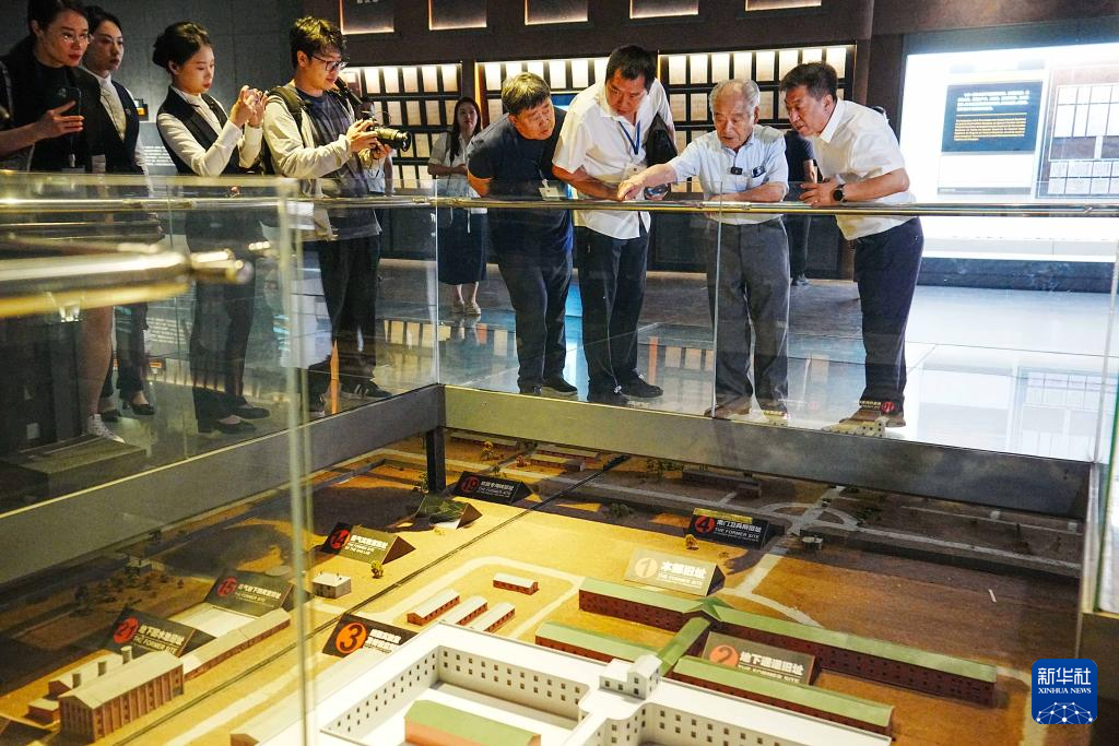 8月13日,清水英男(前中)在侵华日军第七三一部队罪证陈列馆内参观。