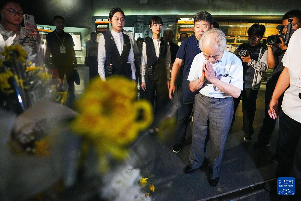 8月13日,清水英男在侵华日军第七三一部队罪证陈列馆内的殉难者名单前祈祷。