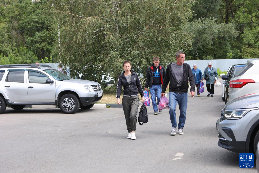 8月14日,来自俄乌边境地区的居民抵达俄罗斯别尔哥罗德州旧奥斯科尔的一处临时安置点。