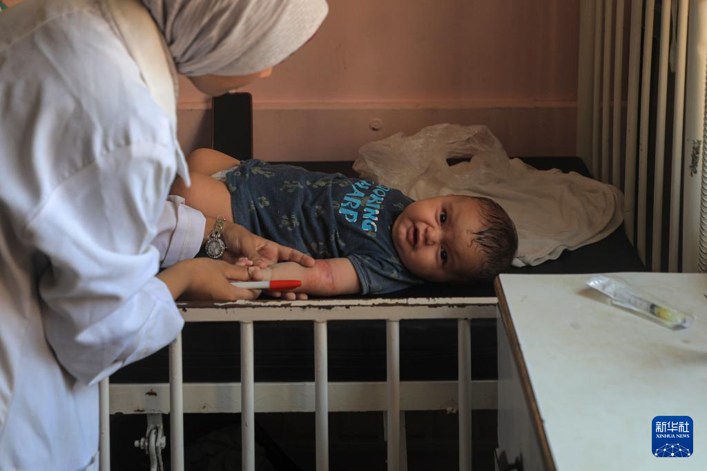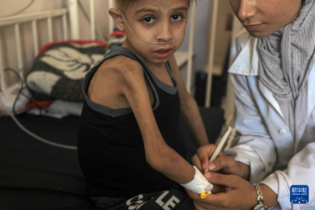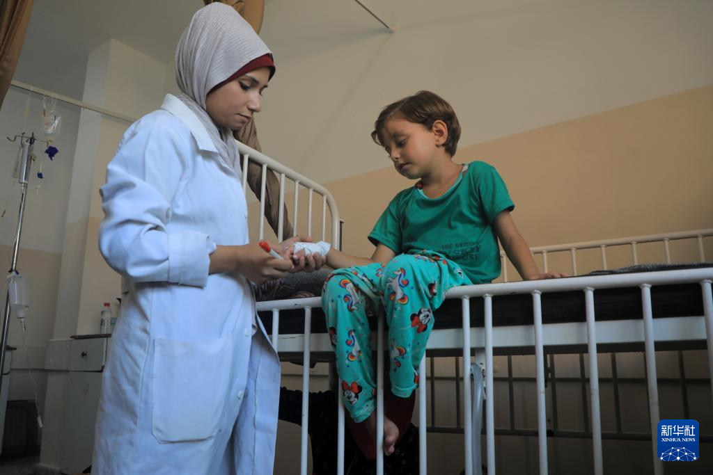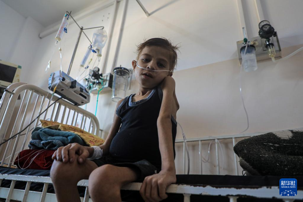 8月19日,患病儿童在加沙地带南部城市汗尤尼斯的纳赛尔医院接受治疗。