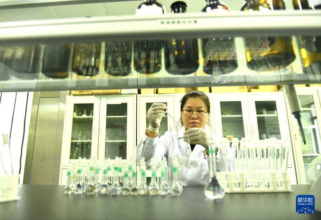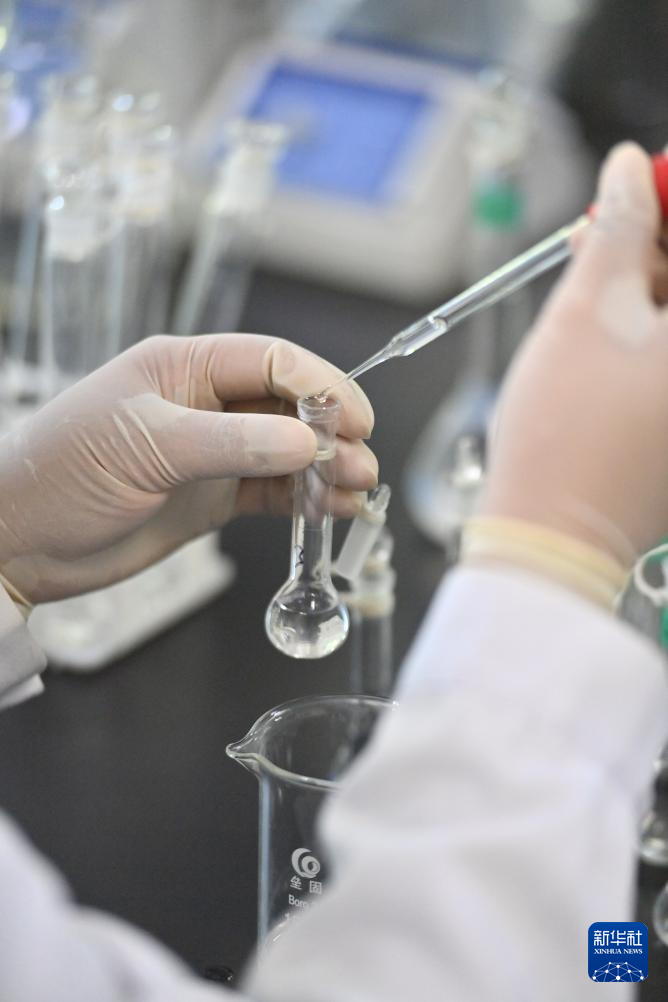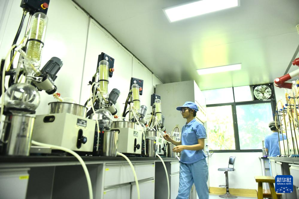 在广西仙草堂制药有限责任公司,技术人员在检测青蒿素(8月27日摄)。