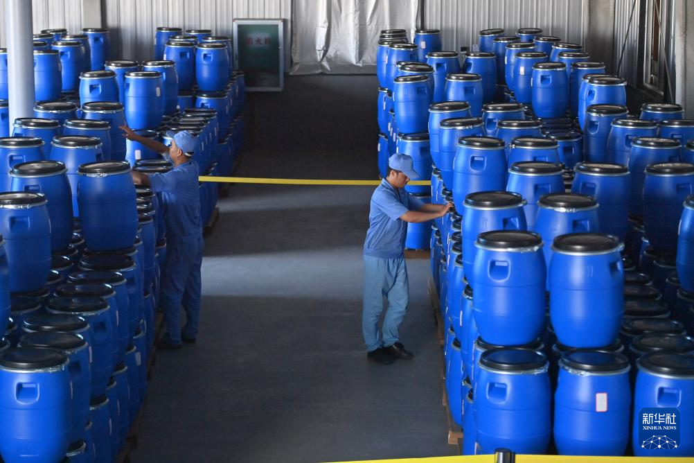 在广西仙草堂制药有限责任公司,工人在搬运青蒿素(8月27日摄)。