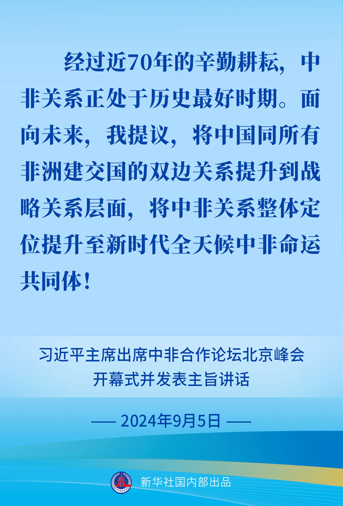 9月5日,习近平主席出席中非合作论坛北京峰会开幕式并发表主旨讲话,宣布中非关系新定位。