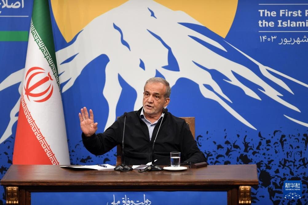 9月16日,伊朗总统佩泽希齐扬在首都德黑兰出席其上任后的首次新闻发布会。新华社记者 沙达提 摄