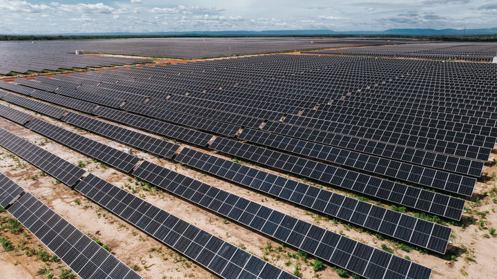 这是2024年6月7日在巴西皮奥伊州拍摄的马兰加图光伏电站(无人机照片)。新华社记者 王天聪 摄