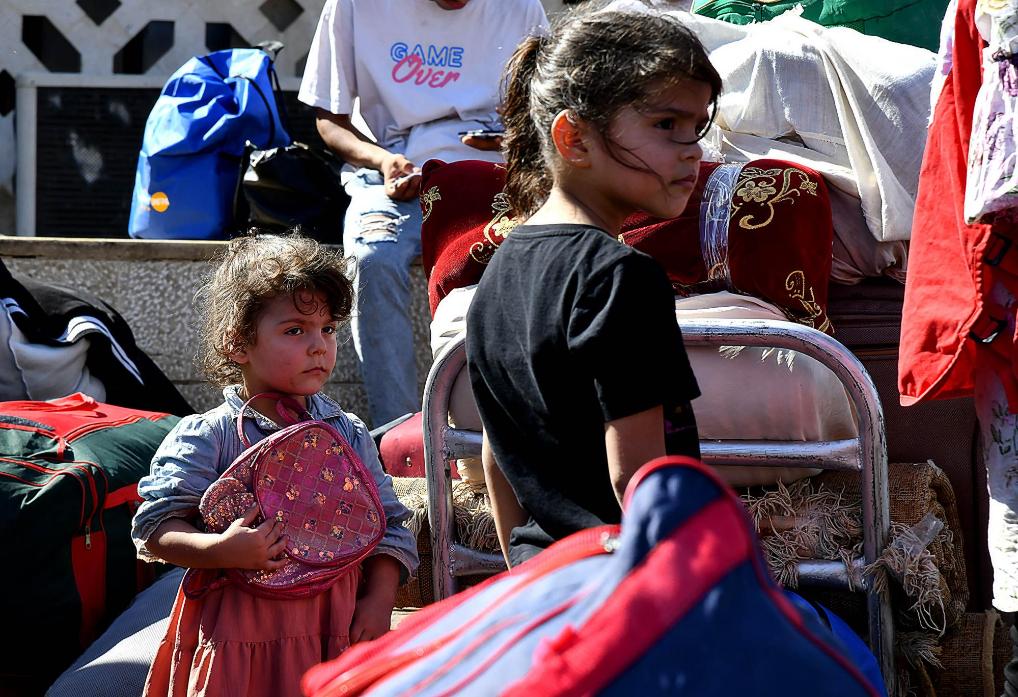 这是10月7日在叙利亚与黎巴嫩边境的佳迪达·亚布斯口岸拍摄的来自黎巴嫩的流离失所者。新华社发(阿马尔·萨法尔贾拉尼摄)