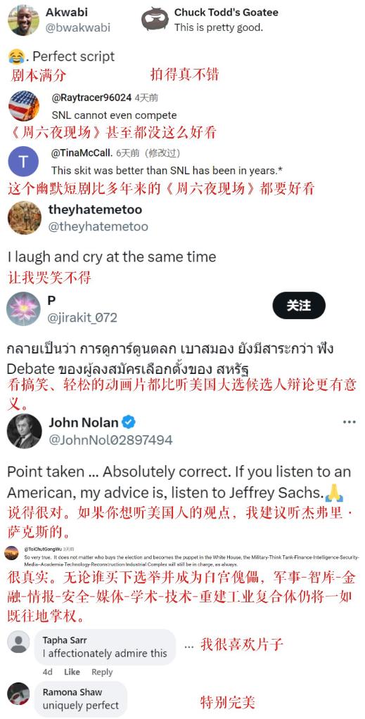 微电影在海外播发后,引发多国专家、网友关注。墨西哥中国中心总裁方硕评论:“说到点上了。”新西兰媒体人安柏然说:“我还没看过《纸牌屋》,但我喜欢你们的戏仿。”美国社交媒体意见领袖克里斯蒂·富兰克林转评道:“多么真实……”印度地缘政治专家坎坦联想到了美国政治现实,并调侃道:“大家都了解美国政治,除了一些美国人。”