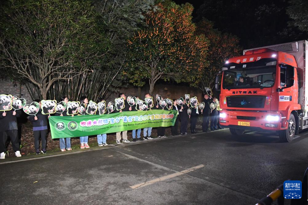 10月14日晚,大熊猫“宝力”“青宝”乘坐专车离开中国大熊猫保护研究中心都江堰基地前往成都双流国际机场,于15日搭乘专机前往美国华盛顿国家动物园,开启为期10年的旅居生活。