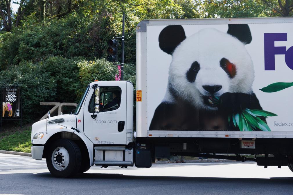 2024年10月15日,在美国首都华盛顿,运送大熊猫的卡车即将驶入华盛顿国家动物园。新华社发(亚伦 摄)