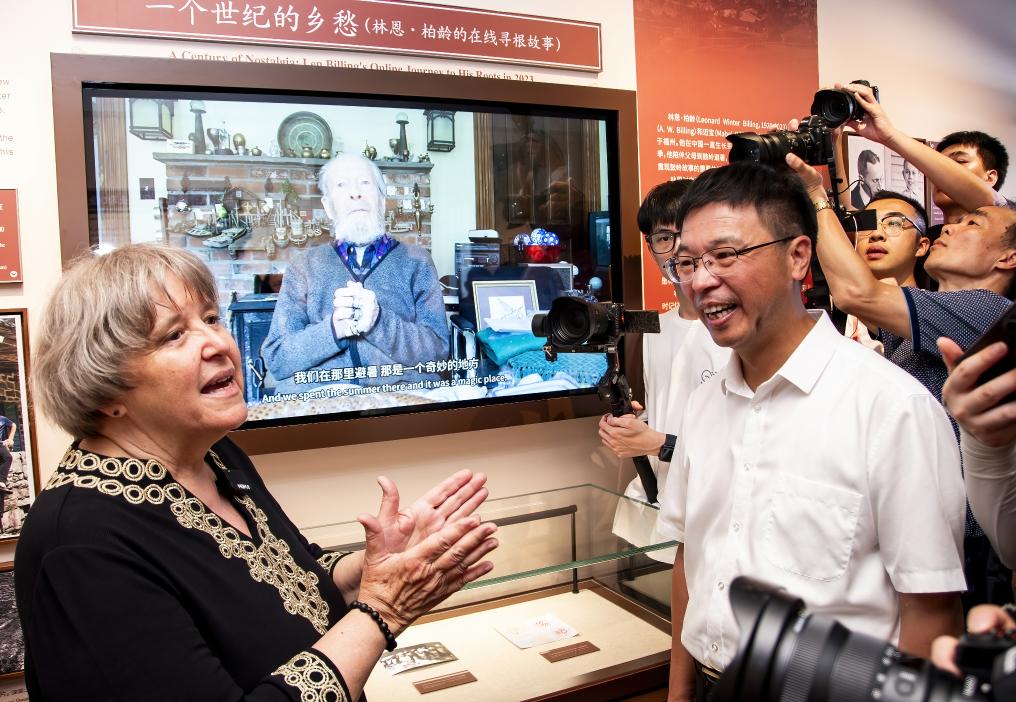 2024年6月22日,在福建省福州市郊的“鼓岭·家族故事展示馆”,“鼓岭之友”召集人穆言灵(左一)在向观众介绍美国老人林恩·柏龄的“鼓岭圆梦记”。新华社记者 魏培全 摄
