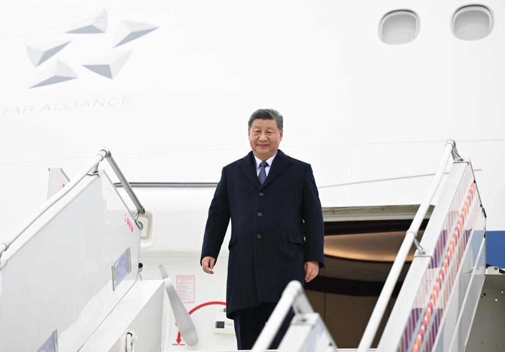当地时间10月22日中午,国家主席习近平乘专机抵达喀山,应俄罗斯联邦总统普京邀请,出席金砖国家领导人第十六次会晤。