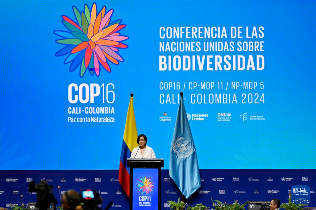 10月20日,在哥伦比亚卡利,哥伦比亚环境与可持续发展部长苏珊娜·穆罕默德在联合国《生物多样性公约》第十六次缔约方大会高级别仪式性开幕活动上致辞。新华社记者 李木子 摄
