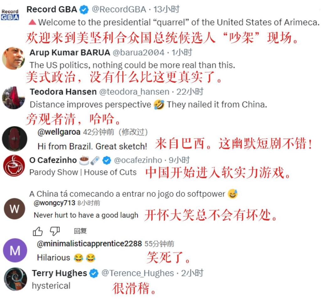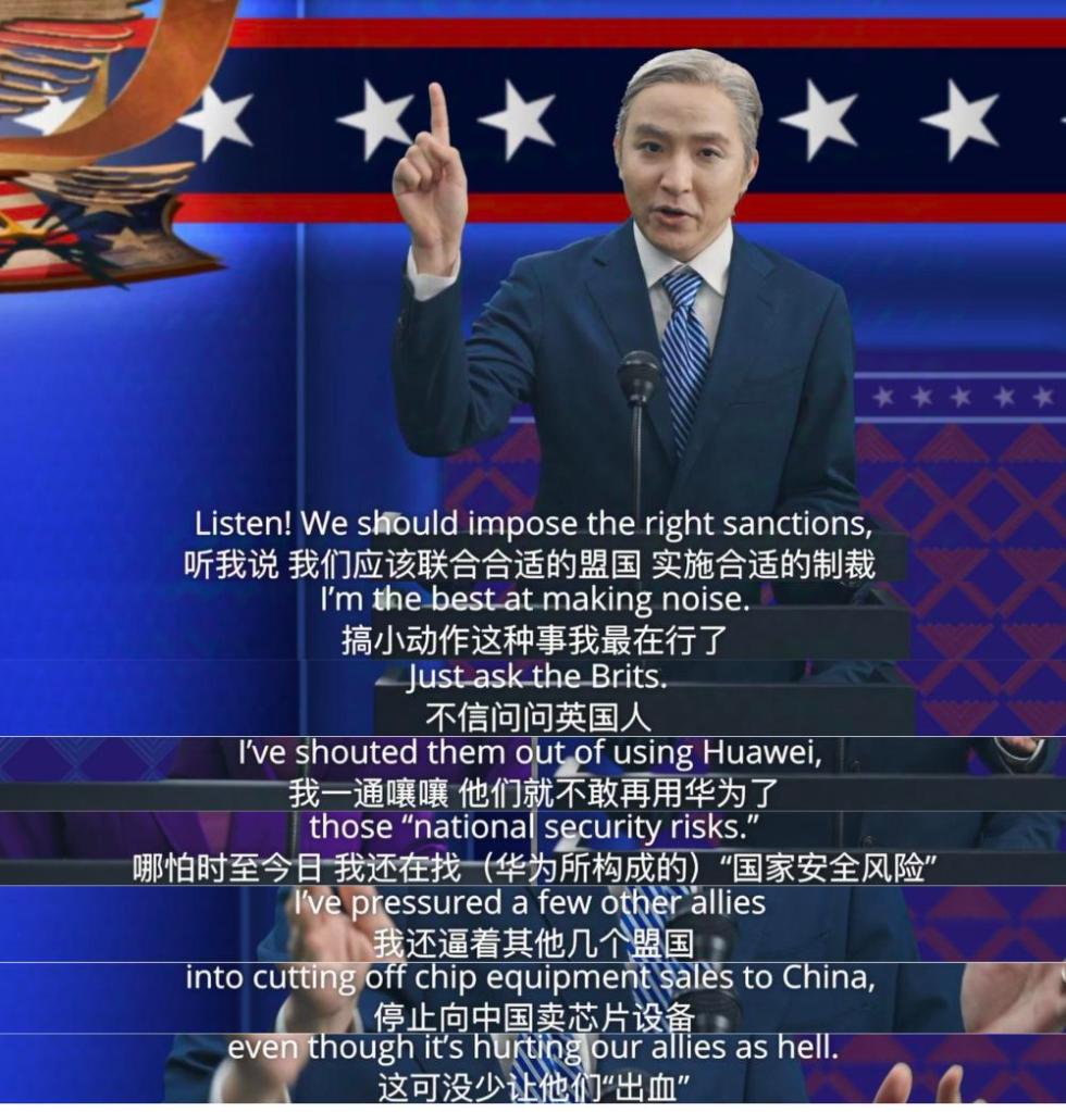 在对华政策方面,女候选人指责“上木”对待中国像“泡了水的蛋卷一样”软弱。“上木”从容接招,指出全面对华制裁会让所有人遭殃,并嘲笑对手是“市面上最搞笑的喜剧演员”。